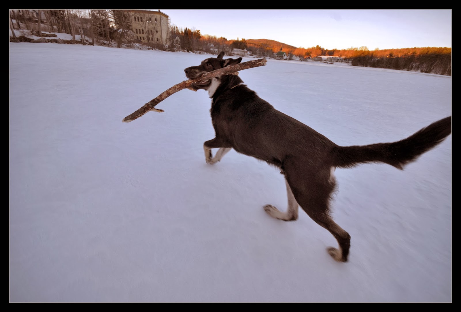 ... while the chicken was thawing alex and dana took the dogs out on the lake for some play ...