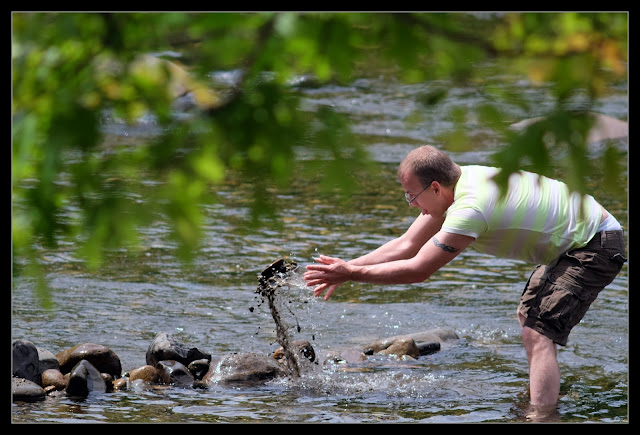 ... only a few days out of surgery, john demonstrates his resolve ... camera, of course, is merely prelude to a canoe paddle ...